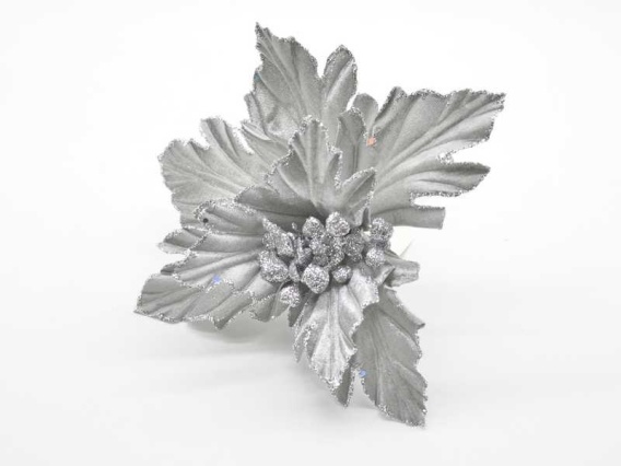 Gwiazda betlejemska szary welur z brokatem (CV20265-2)