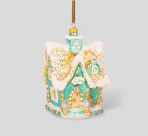 Bombka Huras: Turkusowy domek świąteczny (P839)