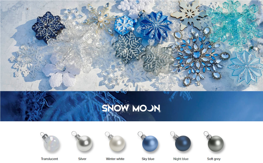Paleta kolorystyczna kolekcji łączy w sobie chłodne, eleganckie odcienie: White Ice Lacquer, srebro, zimową biel i głęboki nocny błękit, uzupełnione o nowe barwy – delikatny błękit nieba i miękką szarość.